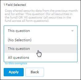 Info panel value copy scope selection - Selecting “This question” will pull values for the selected question only.