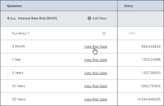 Click the “View Risk Data” link at right of a given time period for question B.3.a, B.3.b or B.3.c to review the underlying risk data used to calculate the risk values displayed.