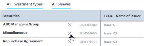 Click the “x” button at right of the “Securities” column for the security record to be deleted.