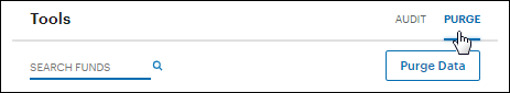 You can purge data for one or more selected funds via the “Purge” tab at upper-right of the “Tools” screen. To access the “Tools” screen, click the corresponding item in the side navigation panel.